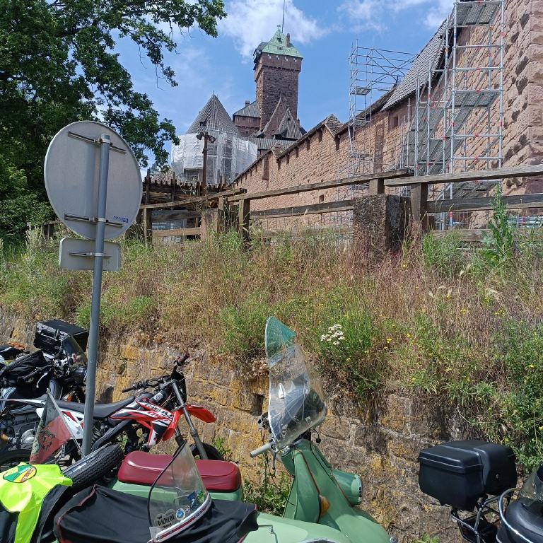 In den folgenden Tagen werden wir dann in Tagesetappen von bis zu 150 km die Gegend erkunden. Die Vogesen bieten eine Vielzahl von Sehenswürdigkeiten, darunter idyllische Dörfer, historische Stätten und atemberaubende Aussichtspunkte mit spektakulären Panoramaausblicken, Museen und vieles mehr. Die hügelige und kurvenreiche Landschaft der Vogesen wird sicherlich das Herz eines jeden Motorrollerfahrers höherschlagen lassen. Die malerischen Straßen und Bergpässe bieten ein aufregendes Fahrerlebnis. Hier sei insbesondere die Route de Crêtes genannt. Sie zählt zu den imposantesten Straßen der Vogesen. Auf 78 km schlängelt sie sich entlang des Hauptkamms der Vogesen von Thann im Süden über den Grand Ballon bis zum Col du Bonhomme im Norden.